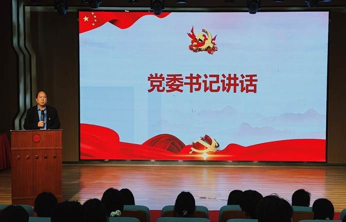 在全党深入学习宣传贯彻党的二十届四中全会精神之际,为进一步强化新发展党员修养,引导其牢记入党初心、践行使命担当。近日,我院学生党支部于文E演播厅举行2025下半年预备党员入党宣誓大会。学院党委书记田建鑫出席并讲话,学生党员代表以及2025下半年预备党员共计32人参会,大会由学生党支部宣传委员张小婷老师主持。