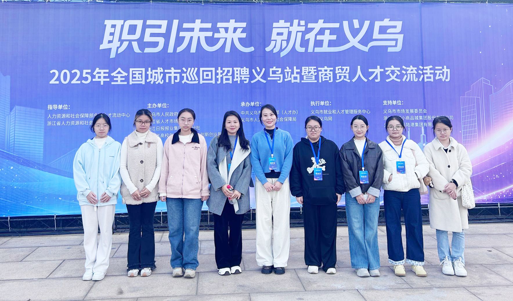 为深入贯彻党中央、国务院关于促进高校毕业生就业创业的决策部署,拓宽学生就业渠道,精准对接区域人才需求,11月24日至26日,由我院党委副书记谢懿、经济管理学院党委副书记晏莉带队,组织两院应届毕业生代表,随江西省教育厅就业工作专班赴义乌参加“职引未来—2025年全国城市巡回招聘义乌站暨商贸人才交流活动”。本次活动由省教育厅评估监测研究院高校就业指导监测中心副院长朱易统筹,全省40余所高校共同参与。