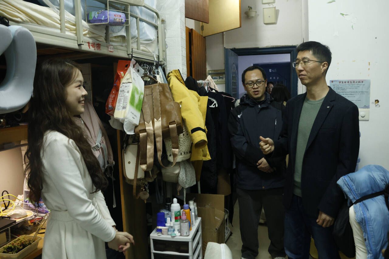 走访过程中,学院领导与各年级学生面对面亲切交流,详细询问学生返校适应状态、课程学习进度、日常作息安排及宿舍生活需求,耐心倾听学生在学业规划、考研备考、实习就业、人际交往等方面的困惑与建议,现场答疑解惑、疏导情绪,为学生成长发展提供针对性指导。针对大一新生,重点叮嘱养成良好作息与内务卫生习惯,夯实大学生活基础;针对毕业班学生,细致了解考研冲刺、求职就业进展,勉励大家明确目标、勤学笃行,学院将全力提供资源支持与服务保障。同时,领导们还对宿舍用电安全、消防设施以及基础设施维护状况等进行了重点检查。